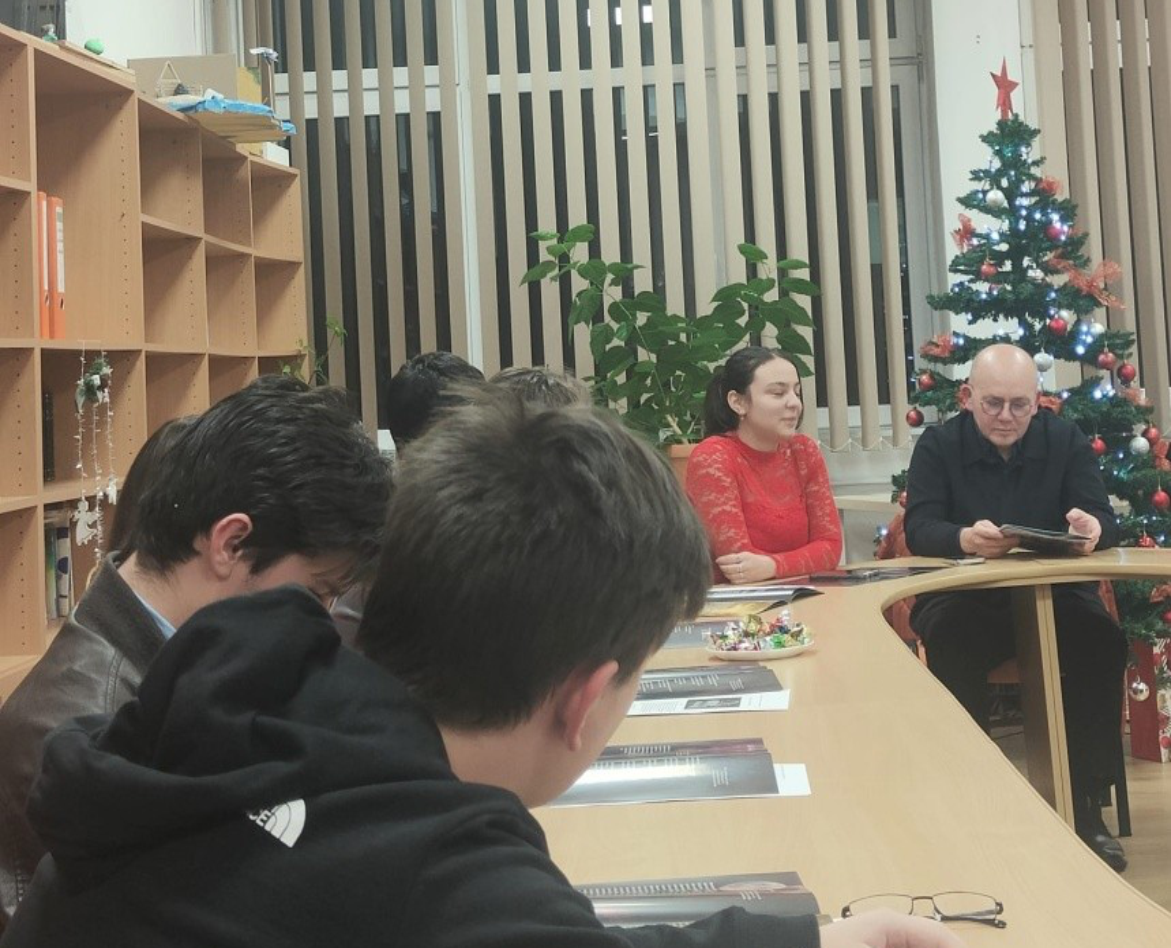Primul invitat de anul acesta a fost poetul Cristian Muntean care, într-o atmosferă caldă, specifică pregătirii spirituale a sărbătorilor de iarnă, le-a împărtășit copiilor de gimnaziu și de liceu câteva experiențe din activitatea sa de scriitor. Mesajul transmis participanților a fost acela că scrisul este atât o cale de exprimare a unor trăiri autentice, cât și un act de generozitate.